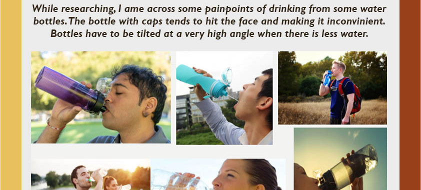 1. I design this water bottle as It is a must to bring water bottle especially in another country as it is likely to be inconvenient to buy water from a place that is not familiar 2. Water is a key essential for human even more for an elderly